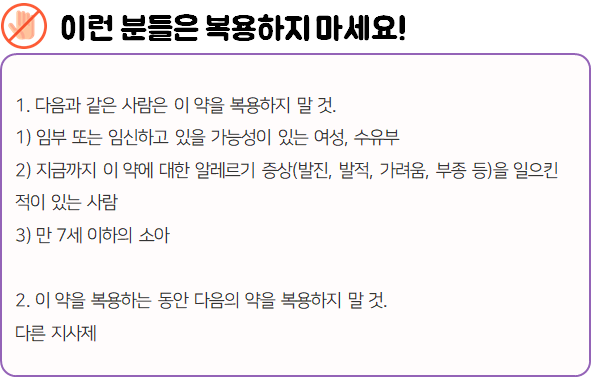 - 다음 환자는 복용 시 위험할 수 있으므로 복용하지 마시길 바랍니다.