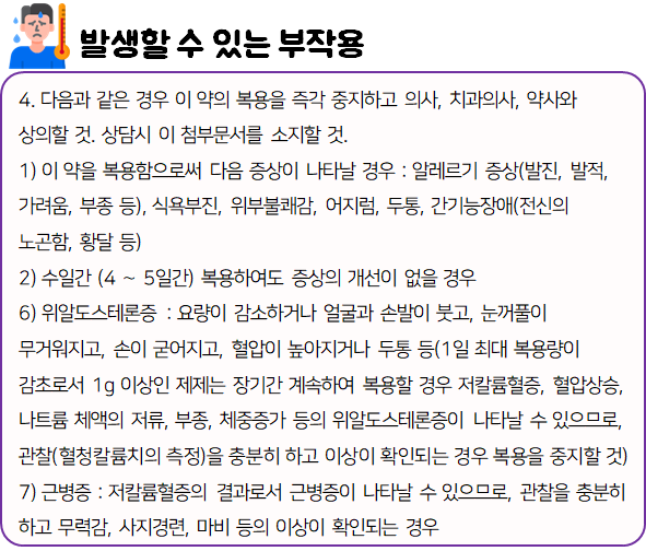 또한 복용 중 부작용 등의 이상반응이 나타날 시 즉시 복용을 멈추고, 전문가 or 의사와 상담하신 후에 복용 지속 여부를 결정하시는 것이 좋습니다.