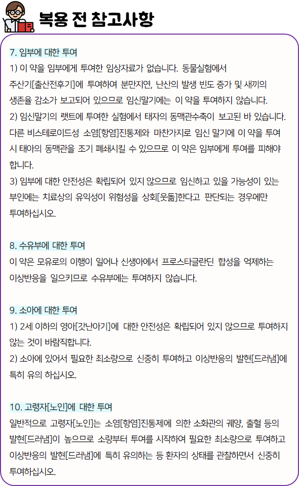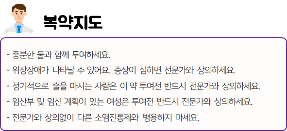 몸에 맞지 않는 의약품의 경우 크고 작은 이상 반응을 불러 일으킬 수 있으므로 드시기 전에 반드시 부작용이나 주의사항 등을 미리 확인하시길 바랍니다.
