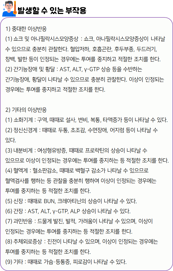 - 이 약을(를) 복용할 시 다음과 같은 부작용이 발생할 수 있으니 주의하시길 바랍니다.