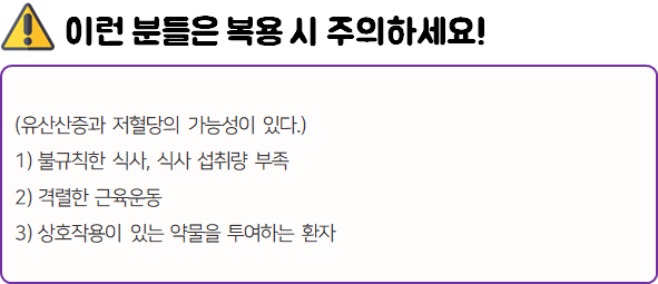 - 다음 환자는 복용 전 전문가 or 의사와 상담 후 복용하시길 바랍니다.