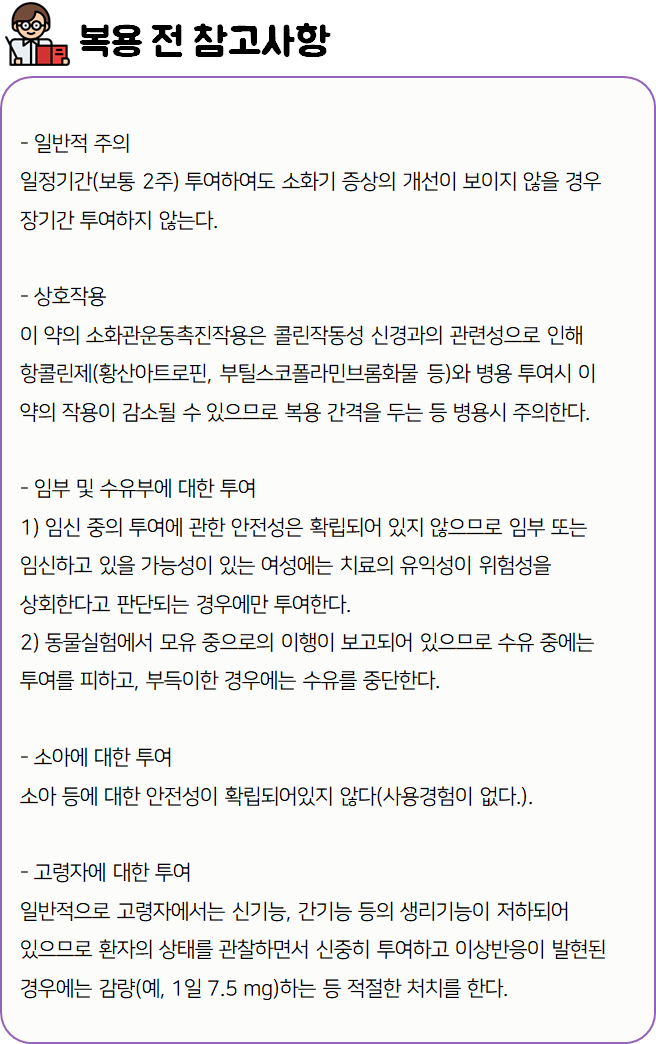 이 의약품은 위장운동을 활성화시킴으로써 소화장애로 인한 각종 증상을 개선하는 약이니 참고하시기 바랍니다.