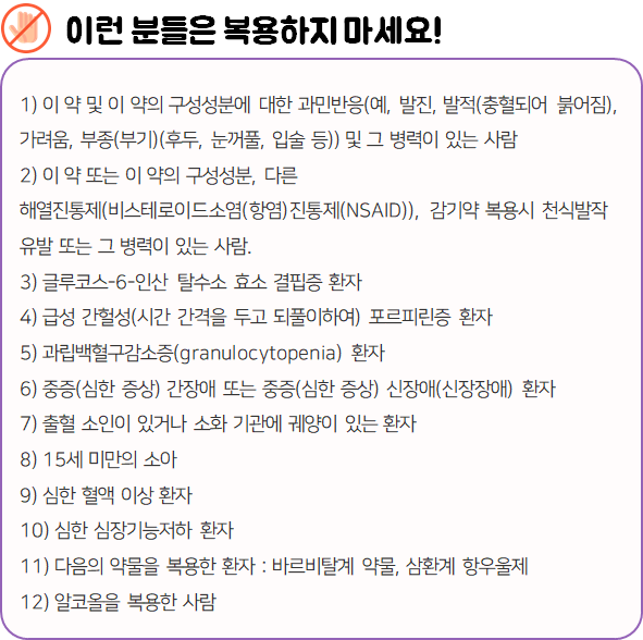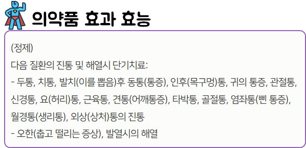 이 의약품은 열을 내리고 염증을 가라앉히며 통증을 해소하는 약이니 참고하시길 바랍니다.