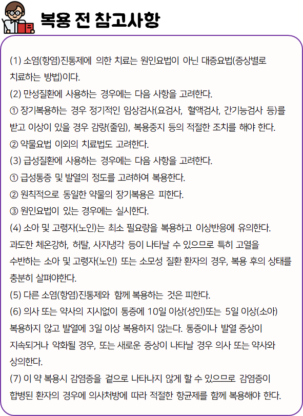 이 의약품은 열을 내리고 염증을 가라앉히며 통증을 해소하는 약이니 참고하시길 바랍니다.