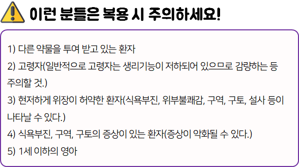 - 다음 환자는 복용 전 전문가 or 의사와 상담 후 복용하시길 바랍니다.
