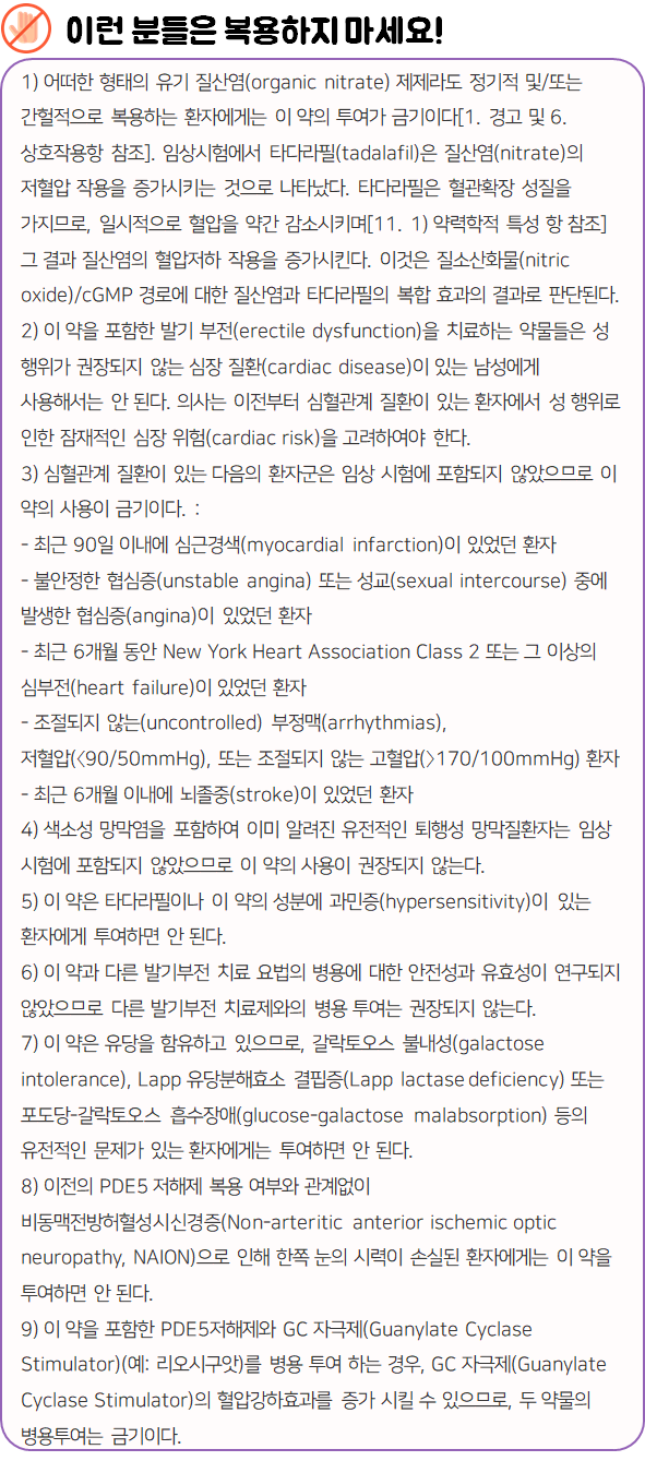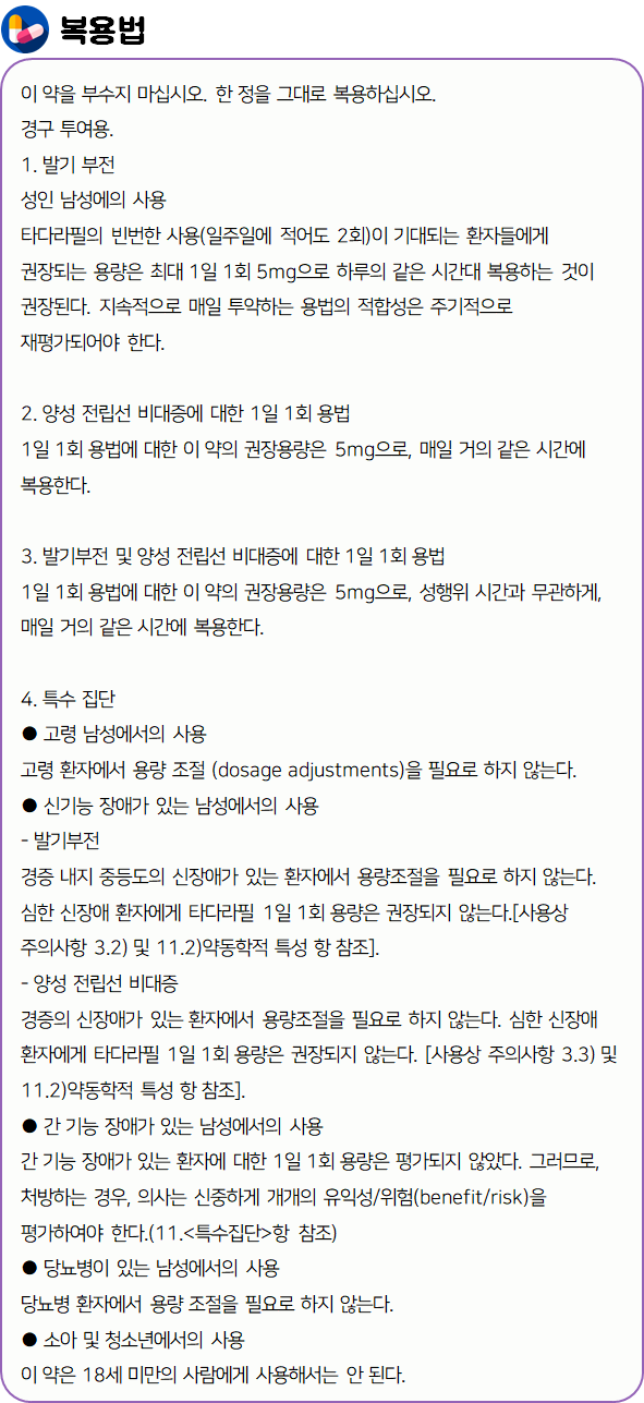 : Tadalafil : 비뇨생식기계질환 > 발기부전 치료제 > 경구용 발기부전 치료제