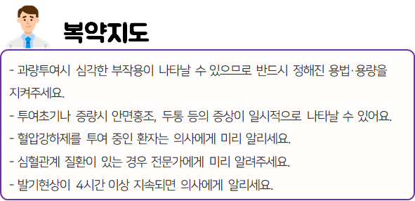 의약품은 반드시 복용 전에 복용 시 발생할 수 있는 부작용이나 주의사항 등을 미리 확인하신 후 드셔야 안전하게 먹을 수 있습니다.