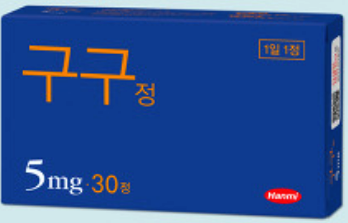 구구정 5mg은(는) 한미약품에서 제조(수입)하였고, 단일 성분의 전문의약품으로 분류됩니다.