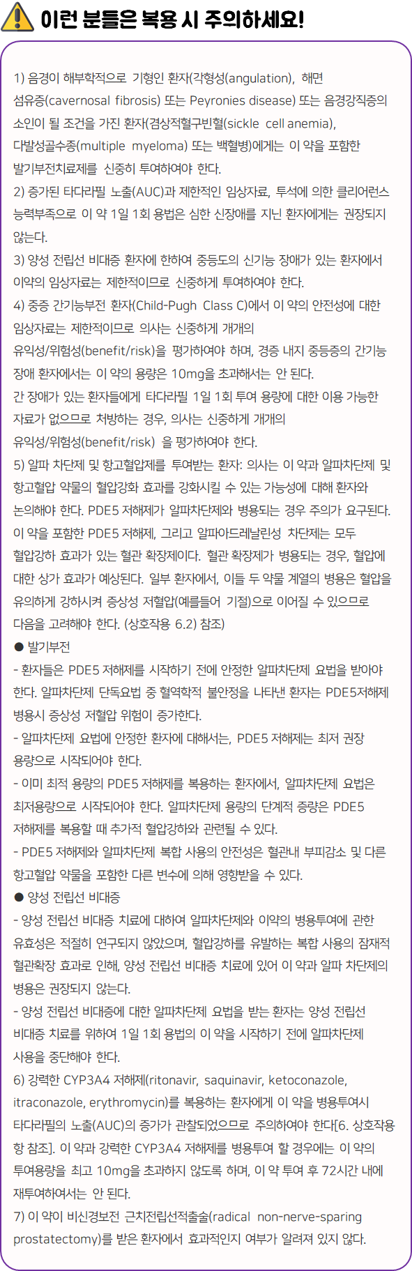: Tadalafil : 비뇨생식기계질환 > 발기부전 치료제 > 경구용 발기부전 치료제