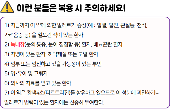 - 다음과 같은 사람들은 의약품 복용 전 참고하시길 바랍니다.