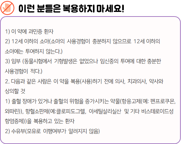 - 다음과 같은 사람은 복용 시 위험할 수 있으므로 복용하지 마시길 바랍니다.