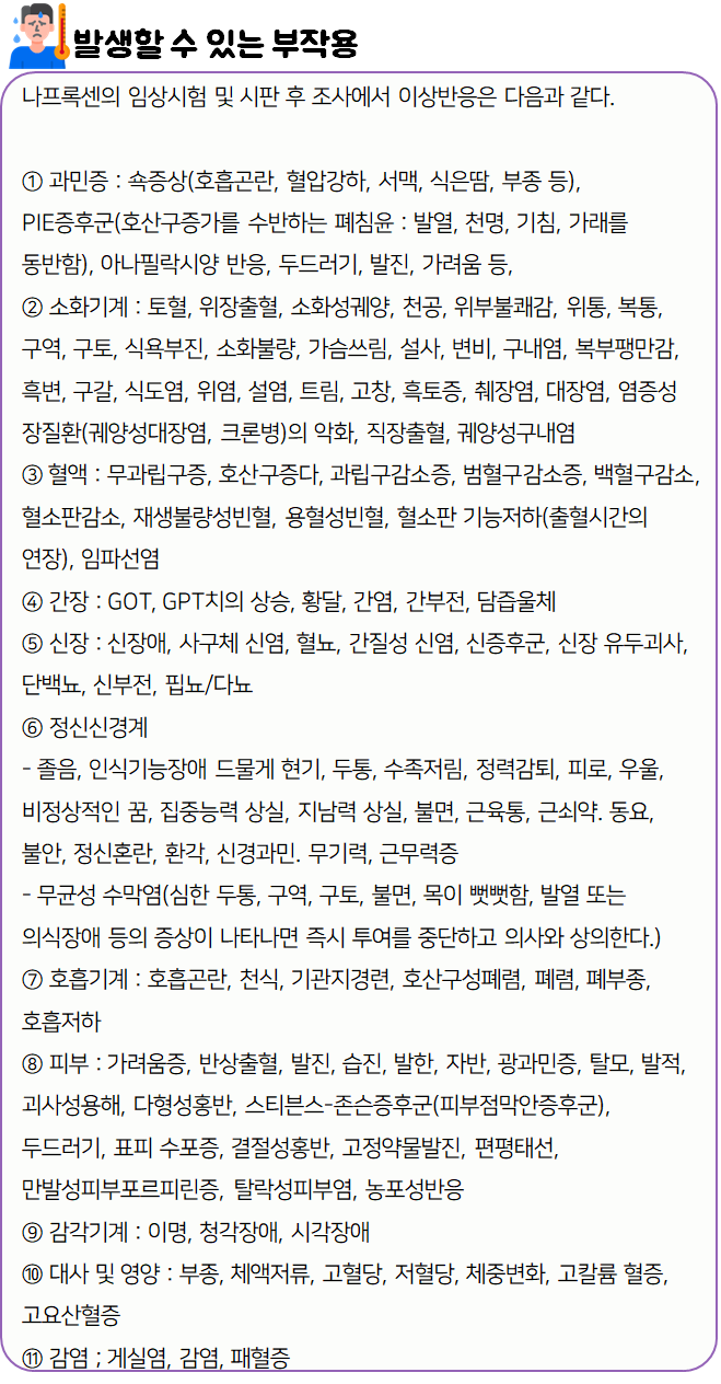 - 이 약을(를) 복용할 시 다음과 같은 부작용이 발생할 수 있으니 주의하시길 바랍니다.