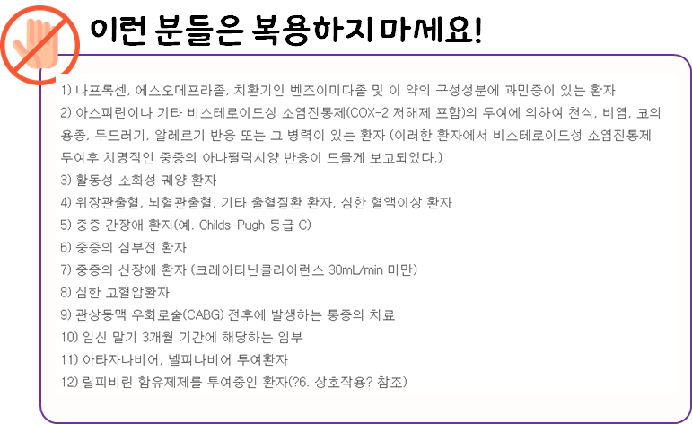 - 다음 환자는 복용시 위험할 수 있으므로 복용하지 마시길 바랍니다.