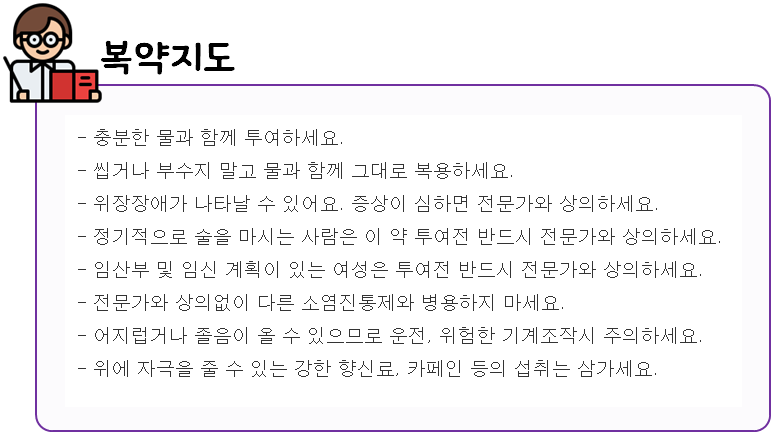 의약품에 대한 효과·효능부터 복용법, 부작용, 복용시 주의사항에 대한 모든 정보를 포함하고 있으니 끝까지 꼼꼼하게 읽으셔서 안전하게 복용하는데 도움 받으시길 바랍니다.