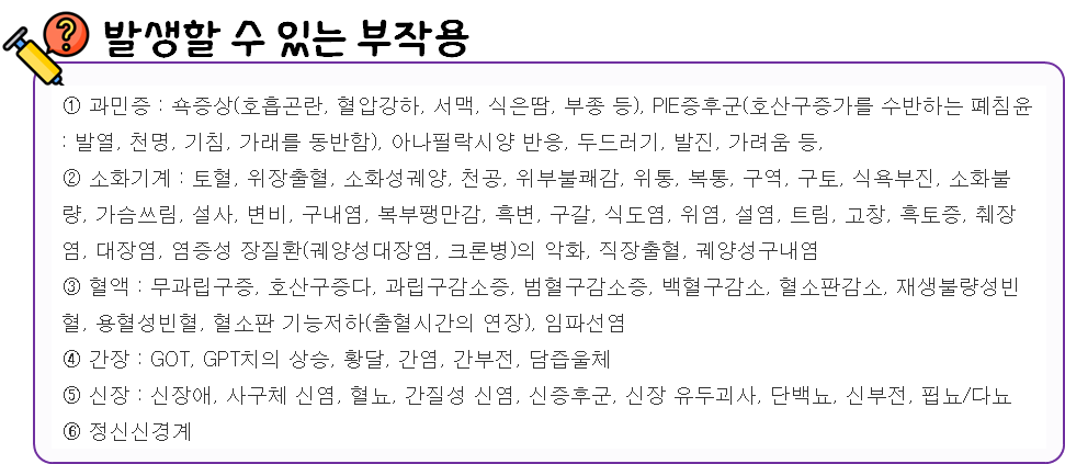또한 복용 중 이상 반응이 나타나면 즉시 복용을 멈추고, 전문가나 의사와 상담하셔서 복용량을 줄이거나 복용을 멈추시는 것이 좋습니다.