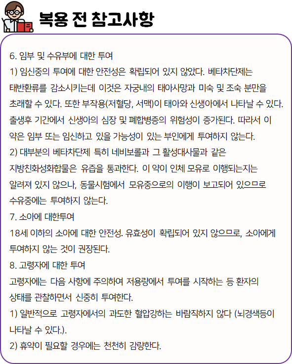 의약품은 반드시 복용 전에 복용 시 발생할 수 있는 부작용이나 주의사항 등을 미리 확인하신 후 드셔야 안전하게 먹을 수 있습니다.
