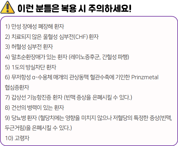 - 다음 환자는 복용 전 전문가 or 의사와 상담 후 복용하시길 바랍니다.