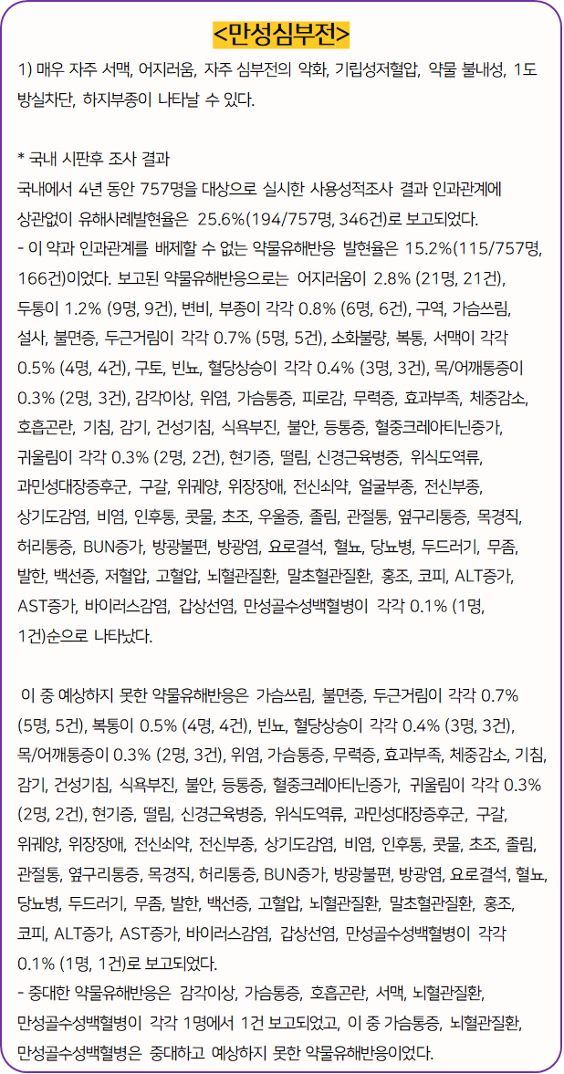 * 부작용은 크게 고혈압과 만성심부전으로 분류하였습니다.