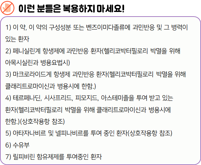 - 다음 환자는 복용 시 위험할 수 있으므로 복용하지 마시기 바랍니다.
