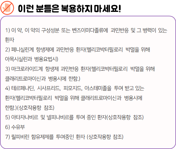 - 다음 환자는 복용 시 위험할 수 있으므로 복용하지 마시길 바랍니다.