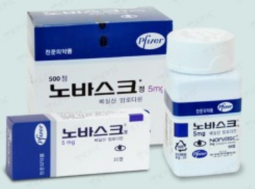 노바스크정 5mg은(는) 한국 화이자제약에서 제조(수입)하였고, 단일 성분의 전문의약품으로 분류됩니다.