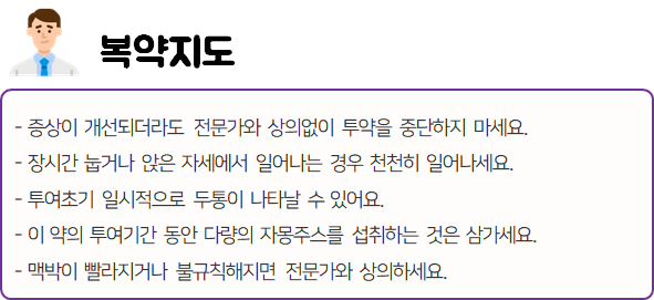 의약품은 반드시 복용 전에 복용 시 발생할 수 있는 부작용이나 주의사항 등을 미리 확인하신 후 드셔야 안전하게 먹을 수 있습니다.