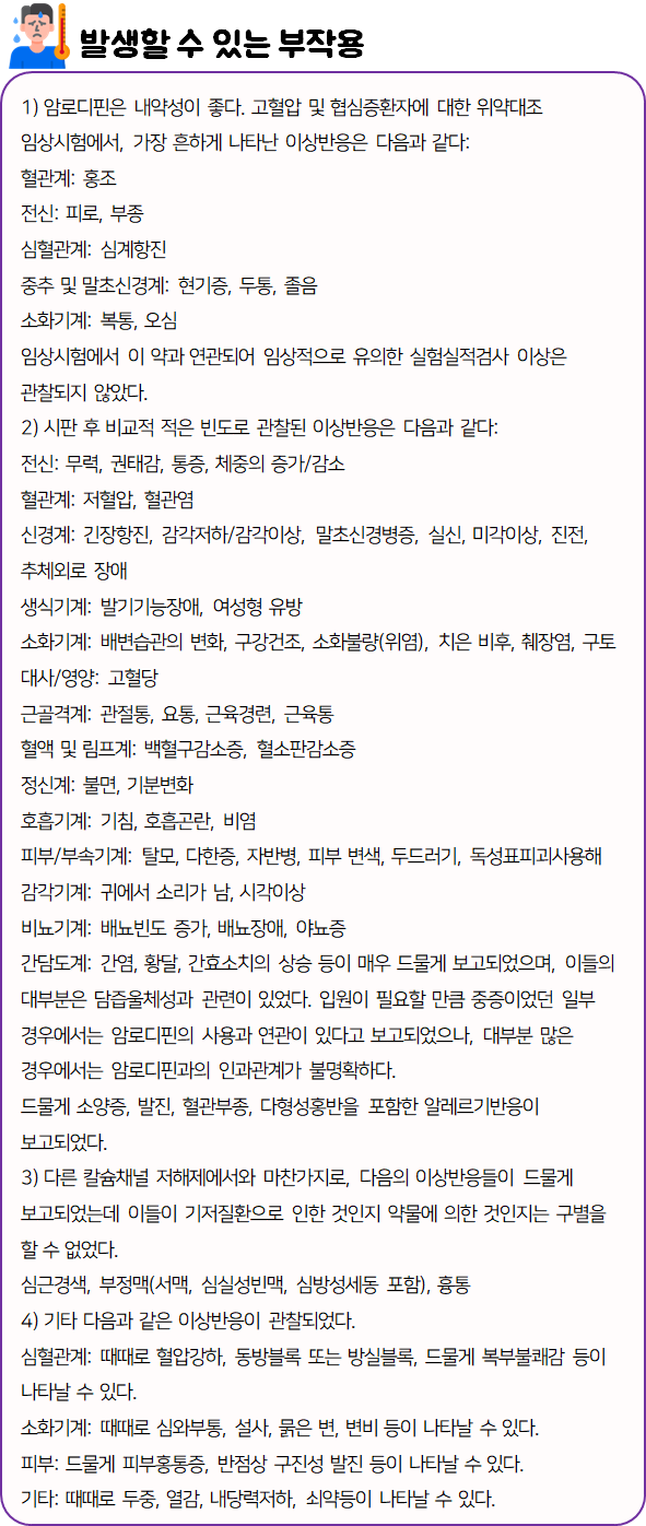 노바스크정 5mg을(를) 복용할 시 다음과 같은 부작용이 발생할 수 있으니 주의하시길 바랍니다.