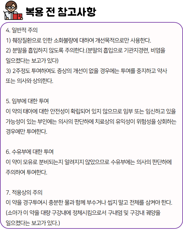 - 다음과 같은 사람들은 의약품 복용 전 참고하시길 바랍니다.