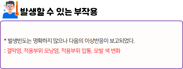 또한 사용 중 부작용이나 각종 이상 반응이 나타나면 즉시 사용을 멈추고, 전문가 혹은 의사와 상담하시기 바랍니다.