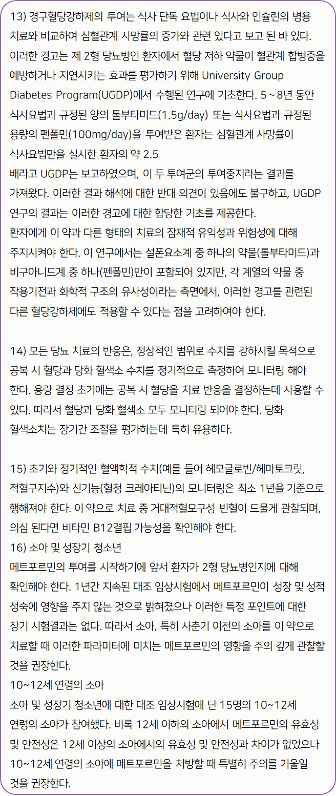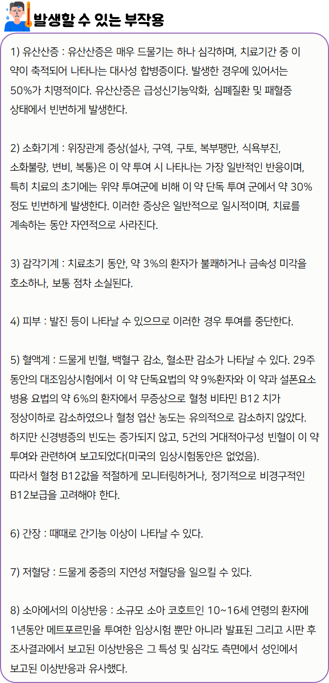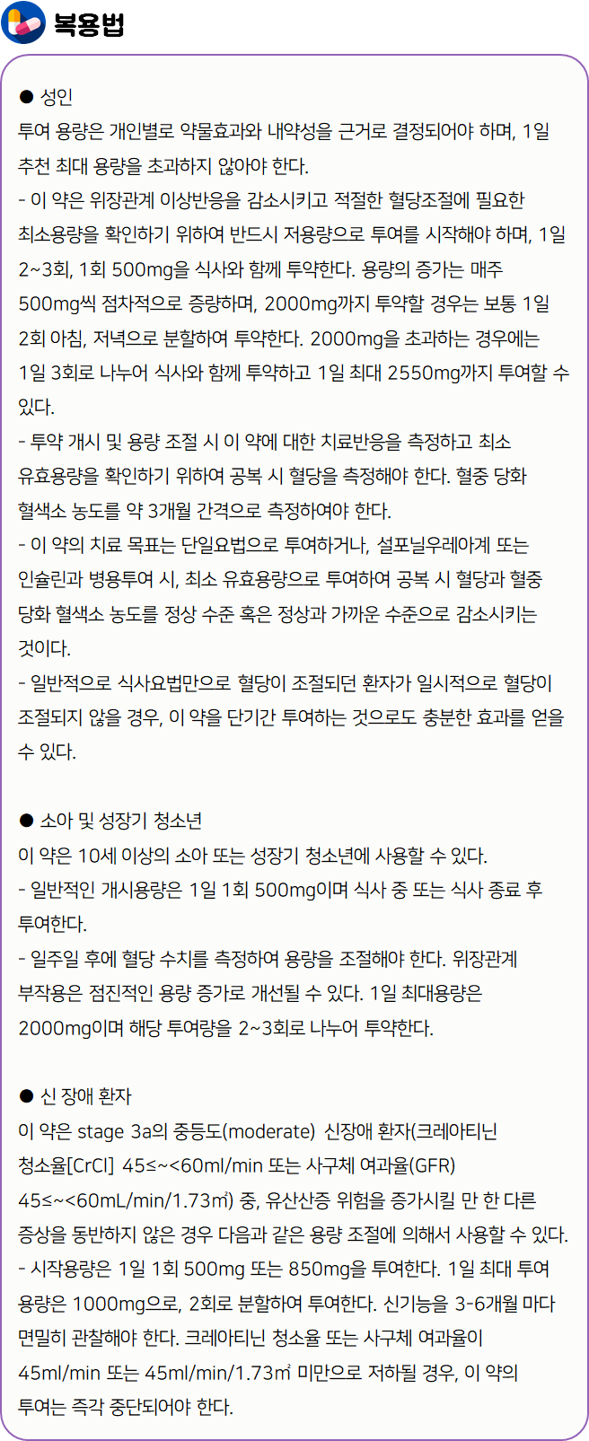이 의약품은 간에서 당의 생성을 억제하고, 말초에서 당의 사용을 증가시켜 혈당을 감소시키는 약이니 참고하시기 바랍니다.