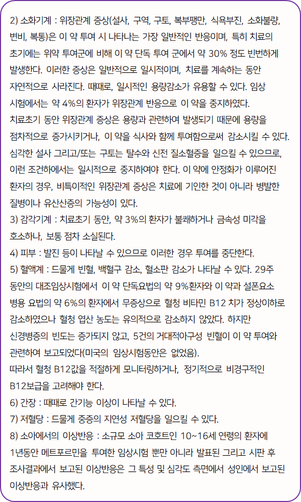 이 의약품은 "간에서 당의 생성을 억제하고, 말초에서 당의 사용을 증가시켜 혈당을 감소시키는 약"이니 참고하시길 바랍니다.