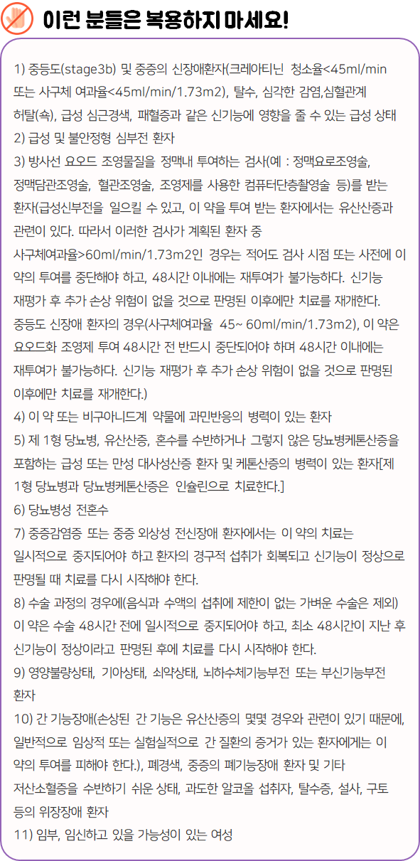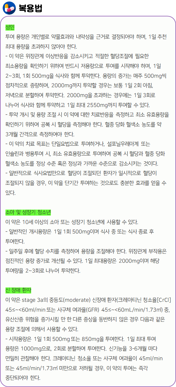 이 의약품은 "간에서 당의 생성을 억제하고, 말초에서 당의 사용을 증가시켜 혈당을 감소시키는 약"이니 참고하시길 바랍니다.