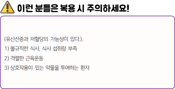 - 다음과 같은 사람은 복용 시 위험할 수 있으므로 복용하지 마시길 바랍니다.