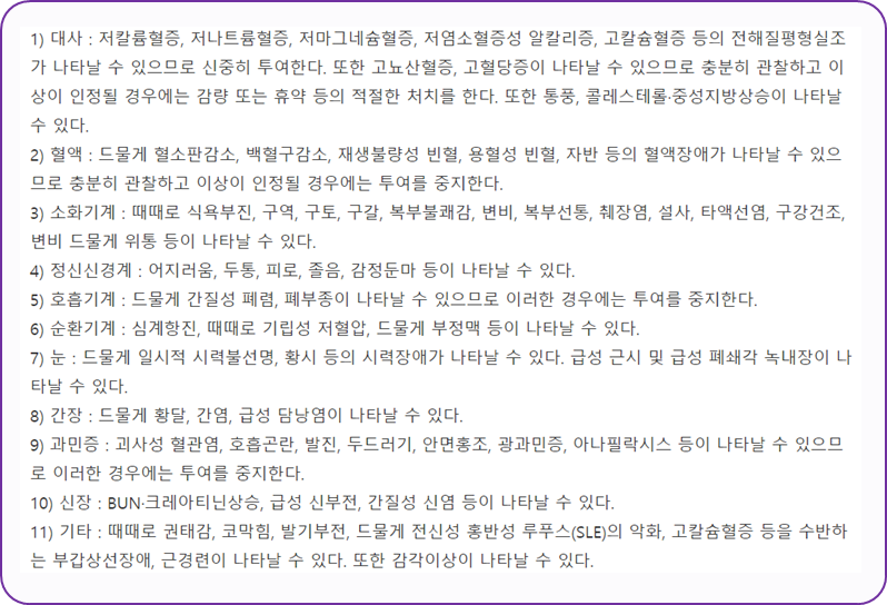 - 가끔 위장 장애가 나타날 수 있는데 증상이 심해질 경우 즉시 의사와 상담하시길 바랍니다.