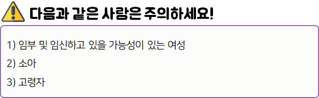 - 다음과 같은 사람은 복용 시 위험할 수 있으므로 복용하지 마시길 바랍니다.