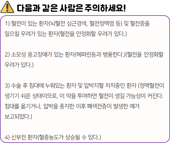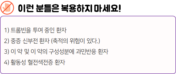 - 다음 환자는 복용 전 전문가 or 의사와 상담 후 복용하시기 바랍니다.