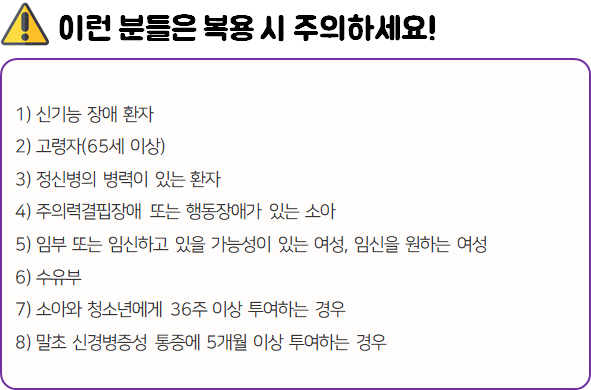 - 다음과 같은 사람은 복용 시 위험할 수 있으므로 복용하지 마시길 바랍니다.