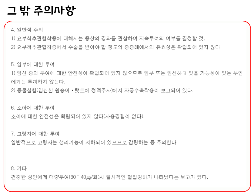 1) 출혈경향이 있는 환자는 출혈을 조장할 가능성이 있으므로 주의합니다.