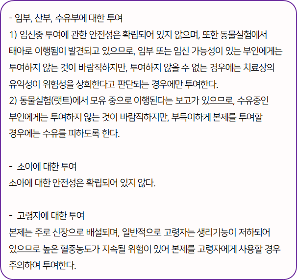 - 다음 환자는 복용 전 전문가 or 의사와 상담 후 복용하시기 바랍니다.
