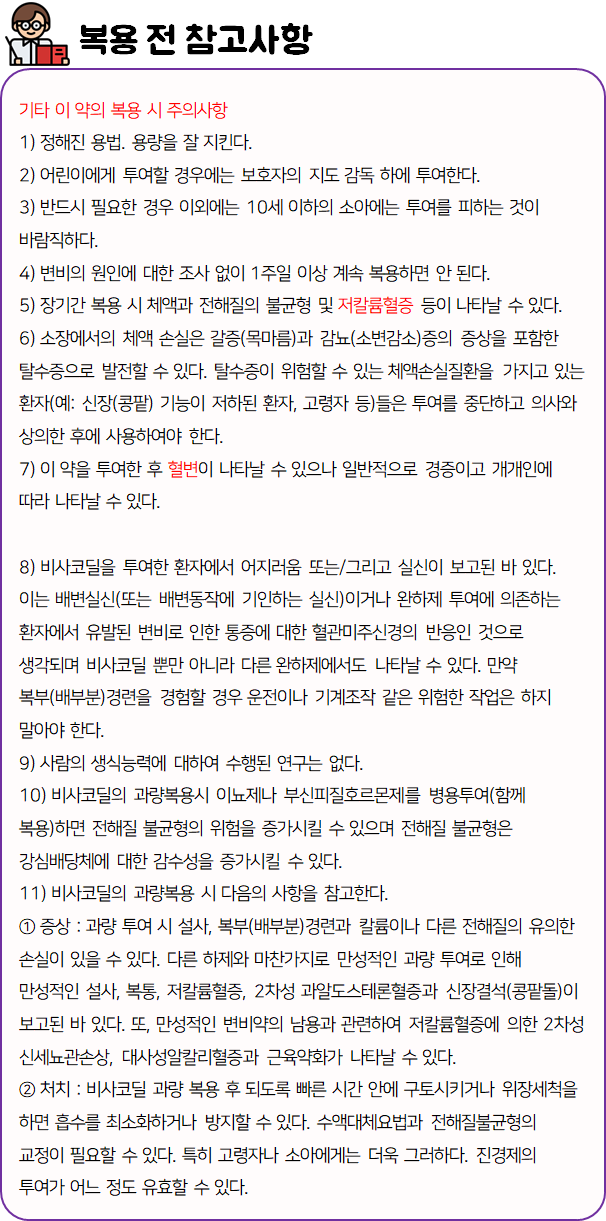 의약품은 반드시 복용 전에 복용 시 발생할 수 있는 부작용이나 주의사항 등을 미리 확인하신 후 드셔야 안전하게 먹을 수 있습니다.