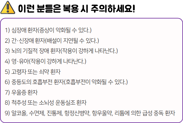 - 다음 환자는 복용 전 전문가 or 의사와 상담 후 복용하시길 바랍니다.