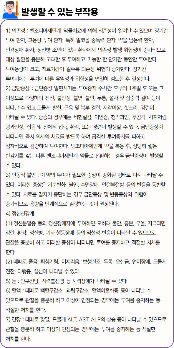 이 의약품은 진정 및 안정 효과를 나타냄으로써 각종 불안장애를 개선하는 약이니 참고하시길 바랍니다.