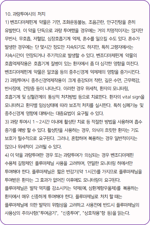 - 과량 복용 시 처치 방법