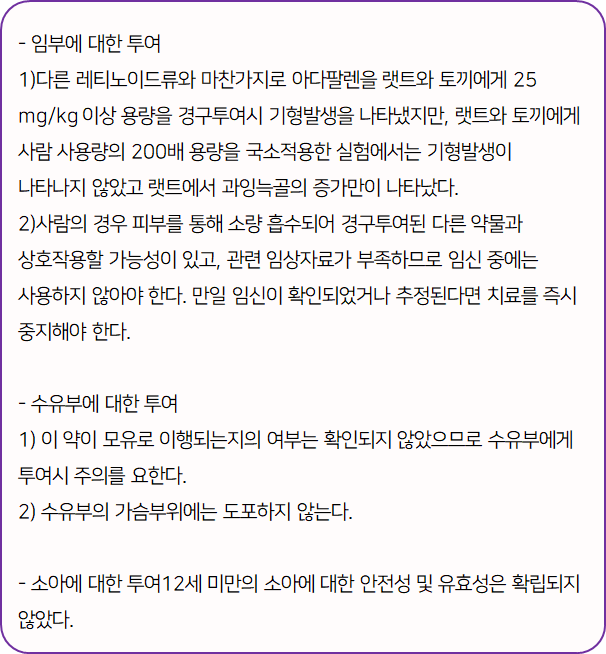 : Adapalene : 피부/피하조직질환 > 여드름 치료 > 기타
