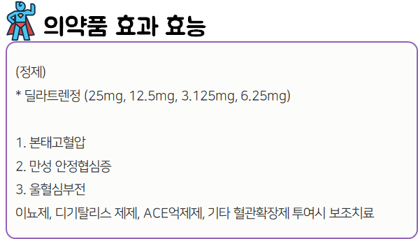 이 글은 딜라트렌정에 대한 효과·효능부터 복용법, 부작용, 복용 시 주의사항에 대한 모든 정보를 포함하고 있으니 끝까지 꼼꼼하게 읽으셔서 안전하게 복용하는데 도움받으시길 바랍니다.