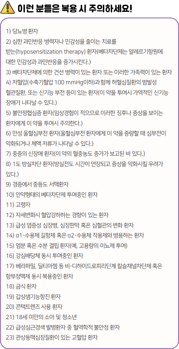 - 다음 환자는 복용 전 전문가 or 의사와 상담 후 복용하시길 바랍니다.