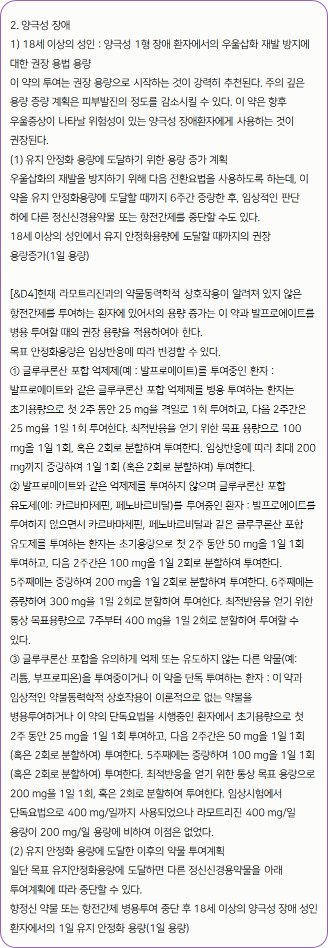 Lamotrigine : 정신/행동장애 > 기타 항정신병 약물 > 항조증