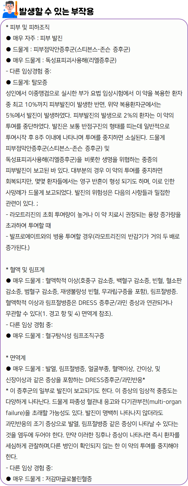 라믹탈정을(를) 복용할 시 다음과 같은 부작용이 발생할 수 있으니 주의하시길 바랍니다.
