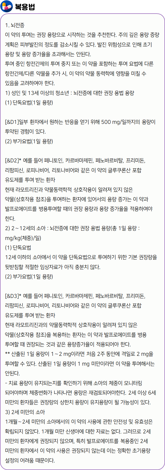 Lamotrigine : 신경계 질환 > 항경련제 > Na+ Channel 차단제 > 기타