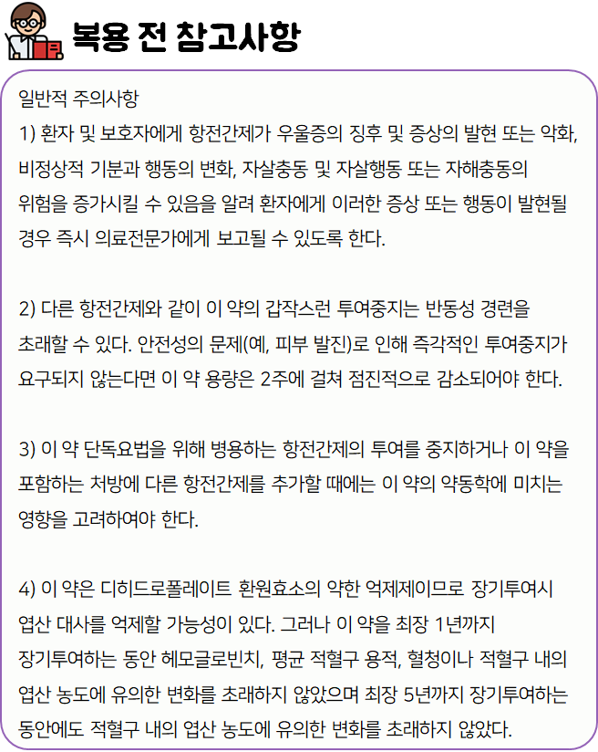 - 의약품 복용 전 다음과 같은 사항을 참고하시기 바랍니다.